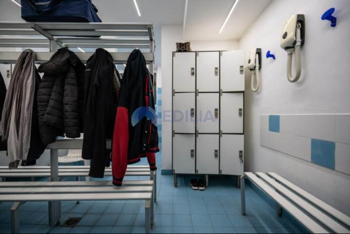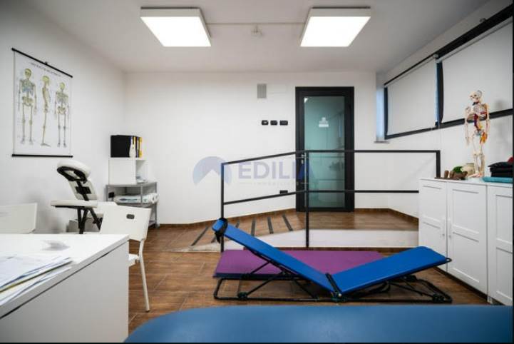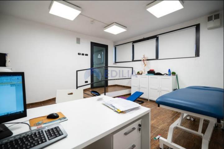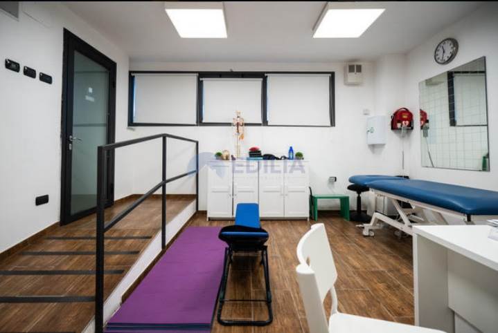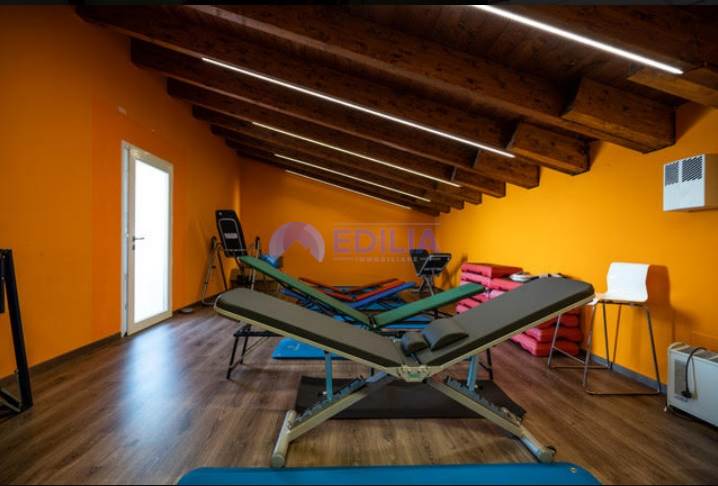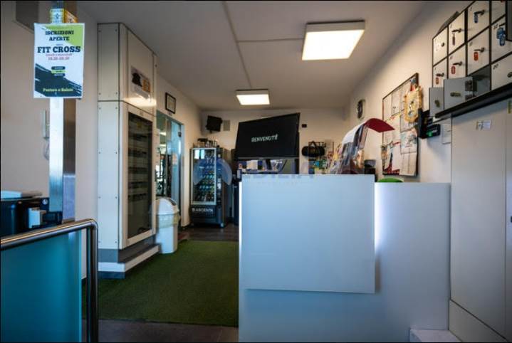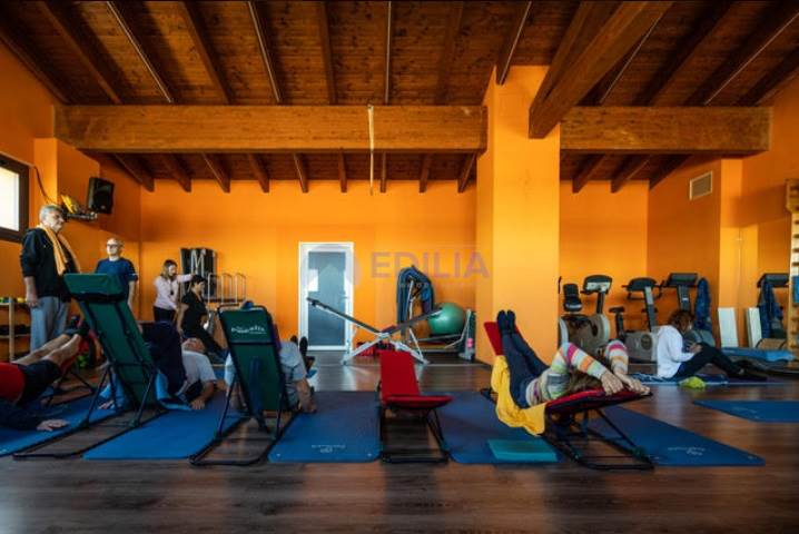 impianto sonoro in tutti gli ambienti, sala di attesa, impianto wifi Eolo attivo in tutto l’edificio, bagno predisposto a portatori di handicap e staff, spogliatoi uomini e donne (panche, armadi, area doccia, bagni), sala di massofisioterapia dotata di rampa per l’accesso di portatori di handicap (lettino elettrico, scrivania, varia attrezzatura per la professione, 1 pancafit, armadi alloggio materiali).