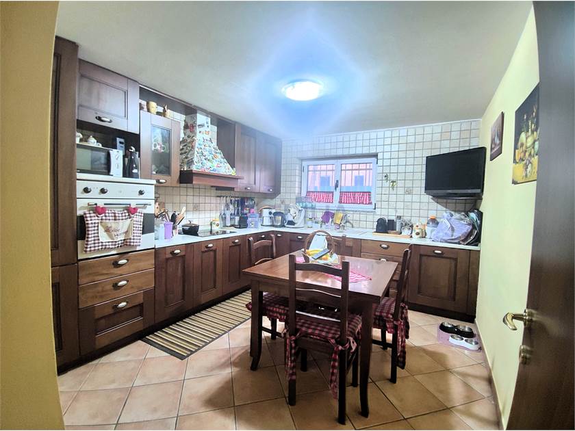 P.T. Ingresso con porta blindata da cui si accede al corridoio che porta alla ampia e luminosa sala con stufa a pellet, ampia cucina abitabile, ampio e comodo ripostiglio e bagno, disimpegno da cui si accede alla scala in legno comunicante col P.1°