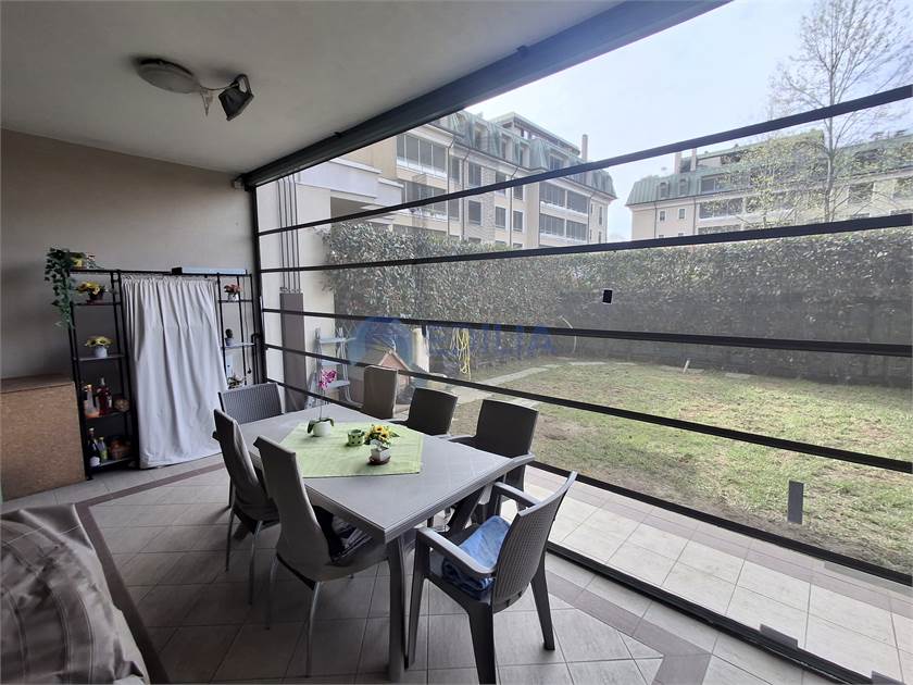 Questa affascintante proprietà è una soluzione di due locali più servizi. di mq 65 ca., giardino privato di mq 77, portico mq 28 ca. e box auto doppio.