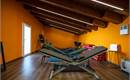 - Cabina massaggi, dotata di due lettini più uno, utilizzabili nella cabina stessa ma anche in spa. La cabina è accessoriata di componenti di arredo per l’alloggio del necessario all’attività e da elementi di arredo (quadretti, mensole, orologio, copertura pagamento, ventilatori, accessori massaggiatori, lampade di sale, hi-fi stereo per la musicoterapia erogabile durante il trattamento)