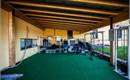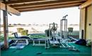 Zona coperta: tappeto verde sintetico a copertura del fondo. Attrezzi isotonici: croci, leg extension, pressa ad aria, abductor, abductor in piedi, panca piana, poliercoline, lat machine, gabbia per squat, panche, manubri, bilancieri, dischi, tappetini.